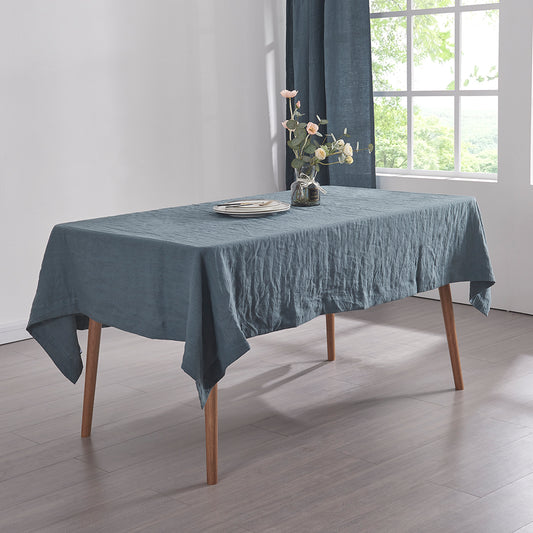 French Blue Linen Plain Tablecloth