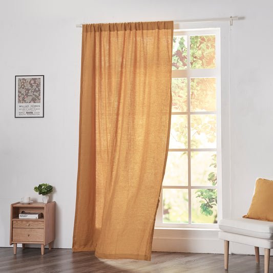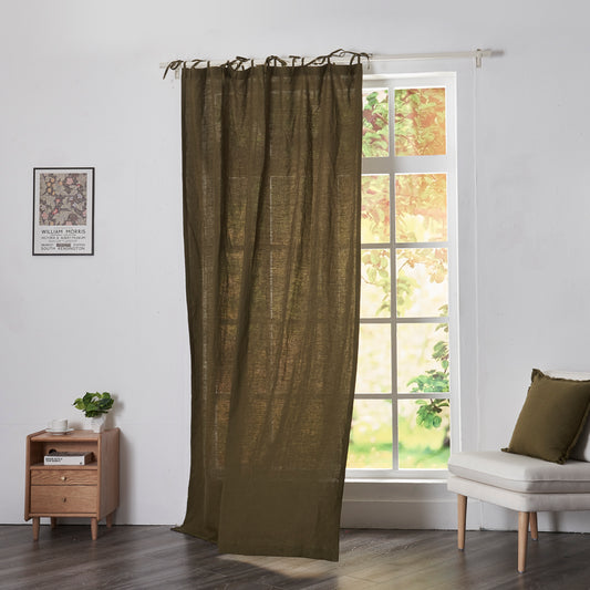 Invite a pop of color into any room with a Mustard Linen Drapery with Tie Top. The radiant yellow invites the radiance of the sun into your home without making things too hot or bright. The tie tops combine fashion and function. The bows add an element of fun, but they also create seamless installation and can even add extra length to your curtains. If you want to enjoy your window treatments every time you walk into a room, look no further than a Mustard Linen Drapery with Tie Top.