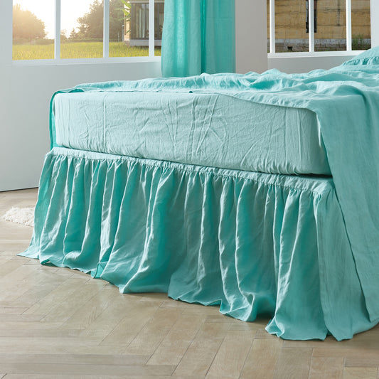 Aqua Green 100% Linen Gathered Dust Ruffle
