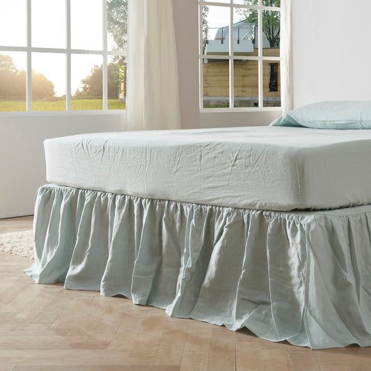 Gathered Washed Linen Dust Ruffle Pale Blue