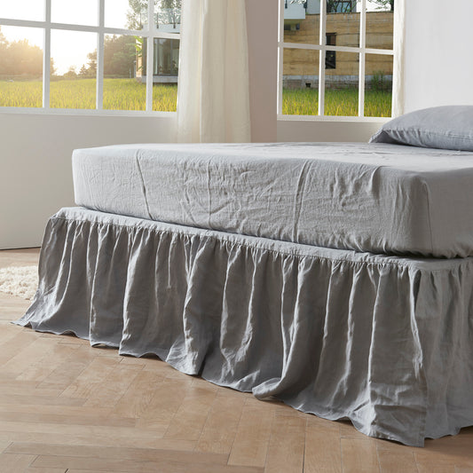 Cool Grey 100% Linen Gathered Dust Ruffle