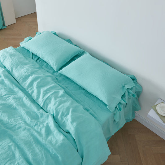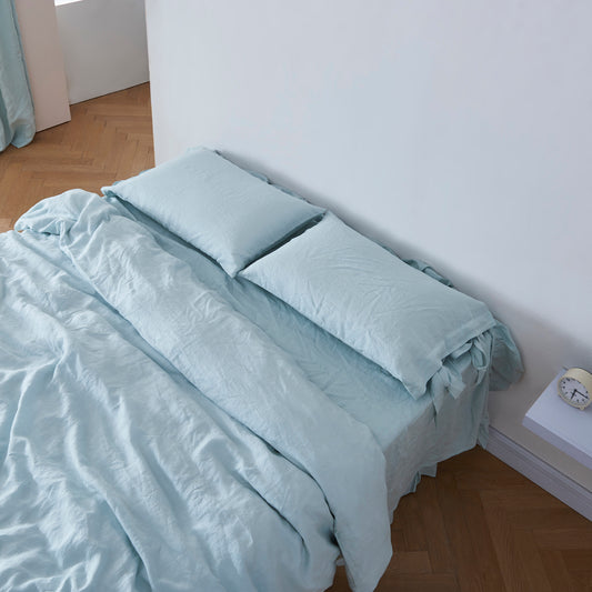 The chic look of a beautiful blue and the quiet luxury of linen bowties come together perfectly in French Blue 100% Linen Bow Ties Pillowcases. Enjoyed for their quality and expert craftsmanship, these linen pillowcases will last your family years even with constant use. They feature a clean profile with just a hint of character in the bow ties and gorgeous blue hue. The temperature regulation and ultimate softness of linen will have you sleeping like a baby.