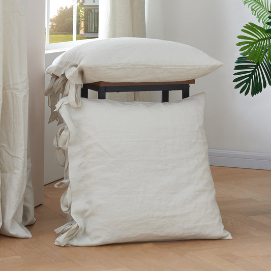 - Cool Grey 100% Linen Bow Ties Pillowcases