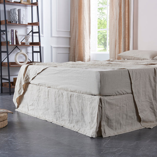 - Natural 100% Linen Bedskirt with Split Corner