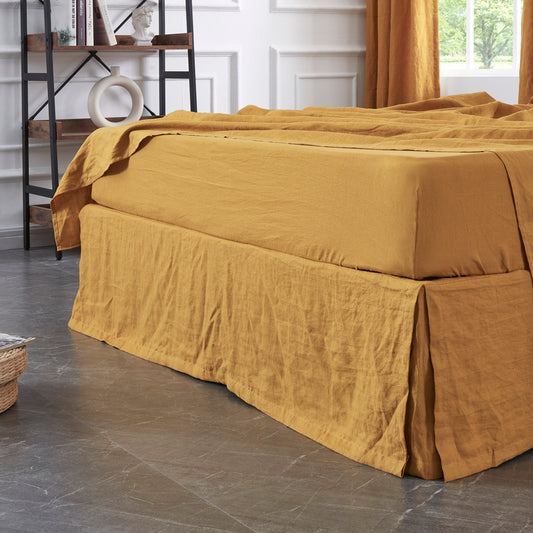 - Mustard 100% Linen Bedskirt with Split Corner