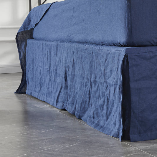 - Indigo Blue 100% Linen Bedskirt with Split Corner