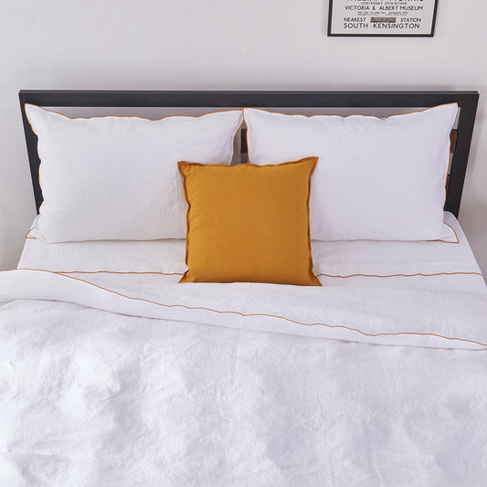 - Mustard Edge Embroidered Linen Duvet Cover