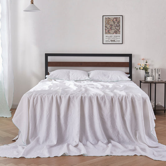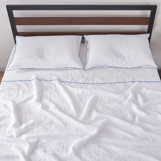 Sleep in style, quality, and comfort when you rest on our Edge Embroidered Flat Sheet crafted from 100% flax linen. This linen is expertly woven from the finest European flax and features a crushed, crinkled look that adds tons of texture and character to your space. The edge embroidery provides a clean border and a pop of color to make your style shine. With temperature-regulating properties, our collection of Edge Embroidered Flat Sheets makes the perfect year-round bedding staple.