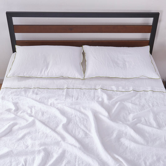 - Leek Green Edge Embroidered Linen Flat Sheet