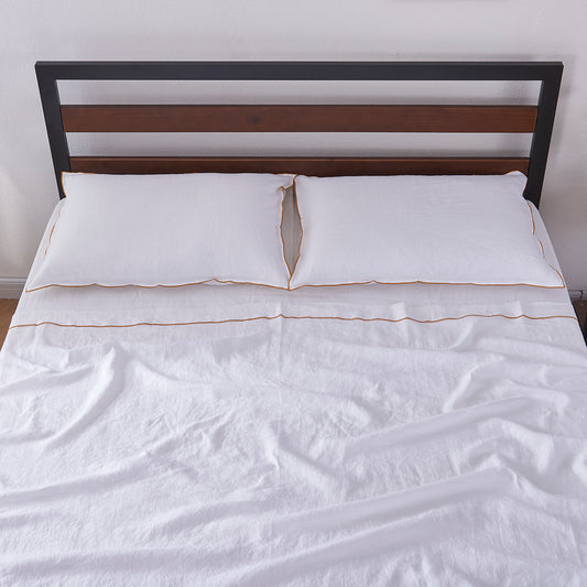 We love styling a neutral bedroom, and what better way to set that off than with a Beige Edge Embroidered Linen Flat Sheet? Neutrals are all the rage when selecting home décor, and finding the best sheets certainly doesn’t have to be boring. With a clean, finished look, the embroidered edge on this flat sheet keeps your bedroom looking tidy and neat while also providing depth with different light colors. Your living space should reflect you, which is why this elegant, classic Beige Edge Embroidered Linen Flat Sheet is the perfect addition to your room.