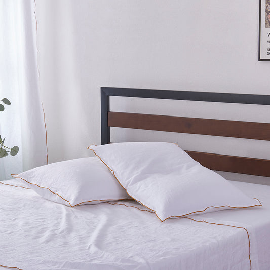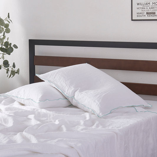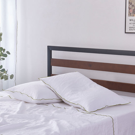 If you want to add a touch of whimsy and bring a bit of nature indoors, consider a Leek Green Edge Embroidered Linen Pillowcases Pair. This duo boasts the softest linen material, perfect for keeping that cool-side-of-the-pillow feel all night long. A delicate green embroidered edge feels natural, fun, and relaxing all at once. A Green Edge Embroidered Linen Pillowcases Pair is just the thing to take your bedding to the next level.