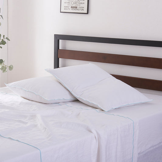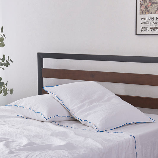 Brilliant Blue Edge Embroidered Linen Pillowcases Pair