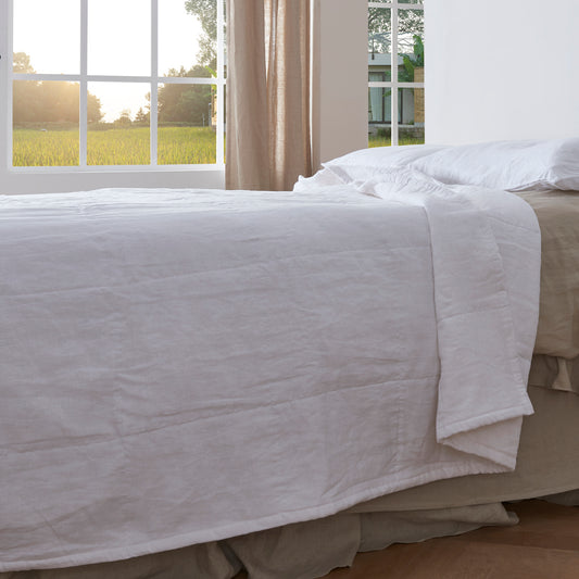 - Box Stitch Linen Quilt Bedspread