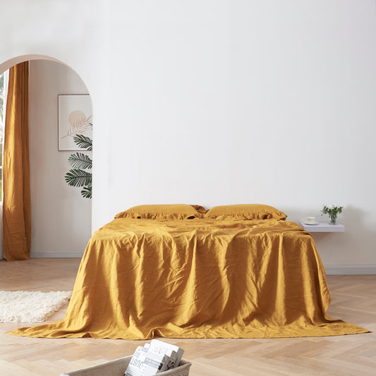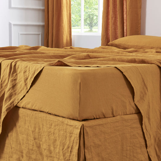 Mustard 100% Linen Ruffle Hem Flat Sheet
