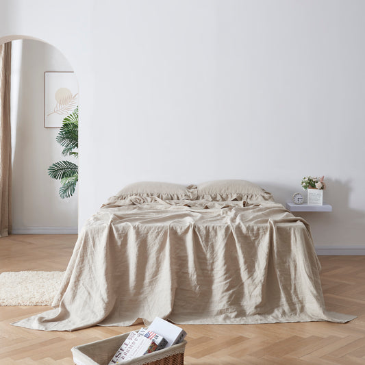 Natural 100% Linen Ruffle Hem Flat Sheet