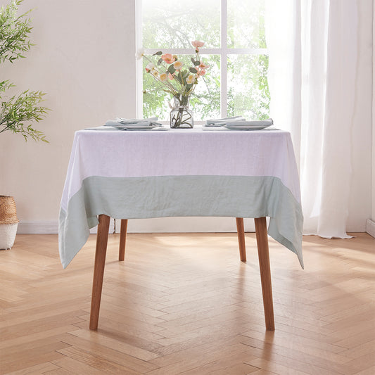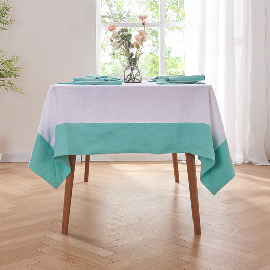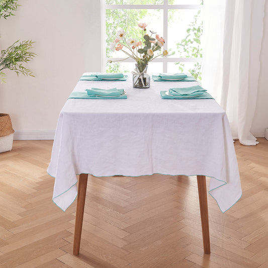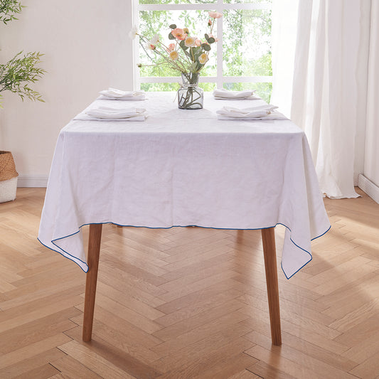 Brilliant Blue Edge Embroidered Linen Tablecloth