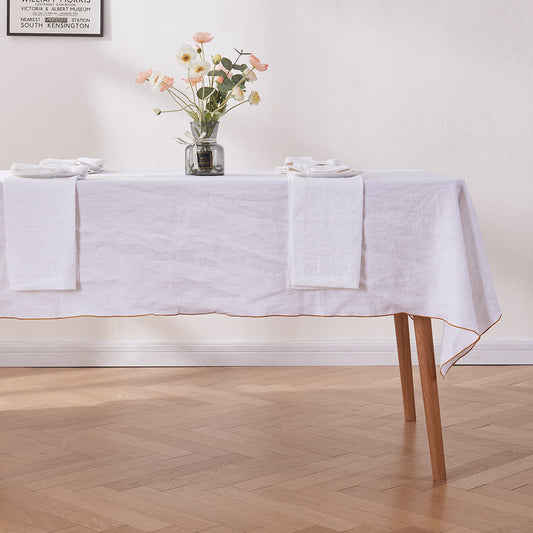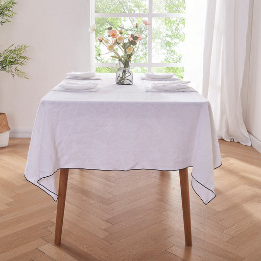 Our round and rectangular tablecloths are available in a variety of sizes, so you can find the perfect fit for your table. Choose from our plain options or edge-embroidered style featuring thick embroidery hems in different colors. Whether you’re looking for a neutral shade or a bold hue to make a statement, you’ll find the right linen tablecloth for your dinner table. Each of our designs features clean lines and a smooth finish so as not to distract from your beautiful tablescape or your scrumptious spread of food.