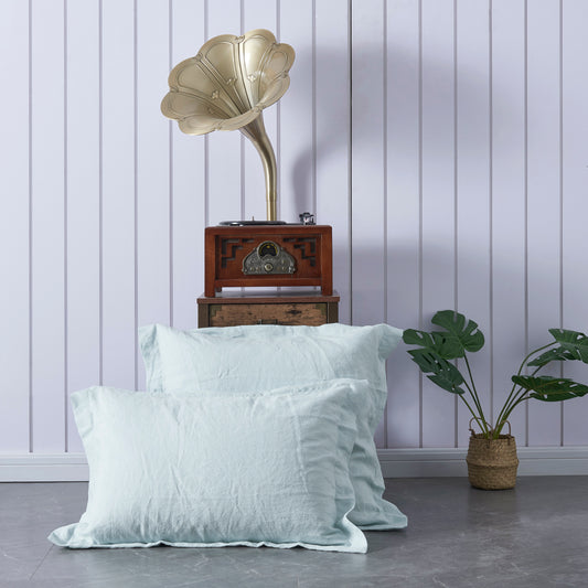 Pale Blue 100% Linen Oxford Hem Pillowcases