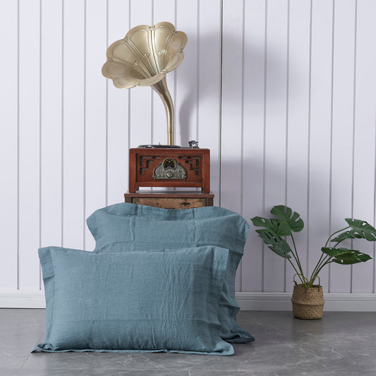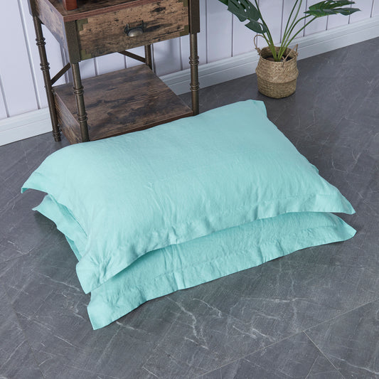 - Pale Blue 100% Linen Oxford Hem Pillowcases