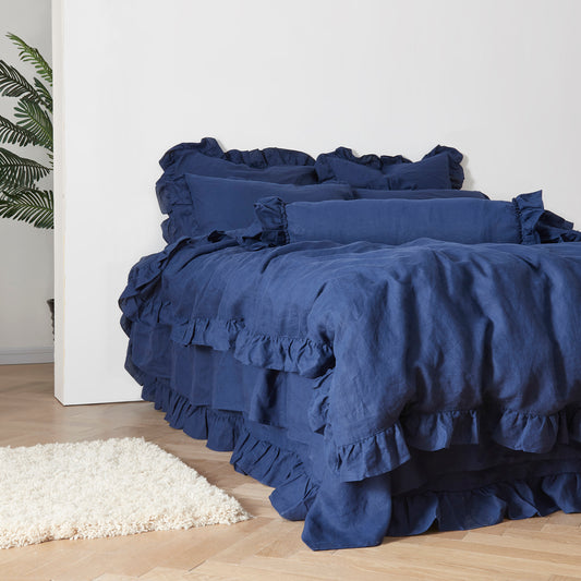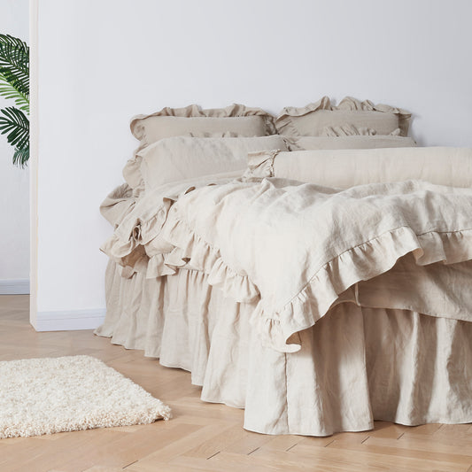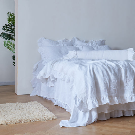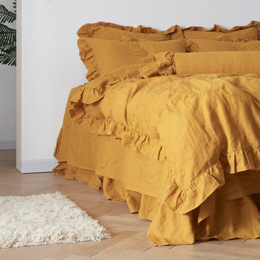 Improve your sleep and upgrade your bedroom style with a ruffled linen duvet cover today!