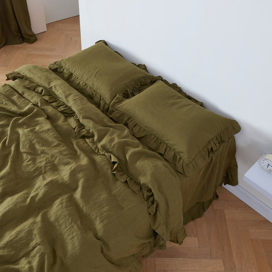 - Mustard 100% Linen Ruffle Hem Pillowcases