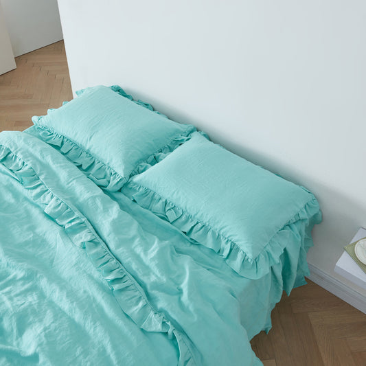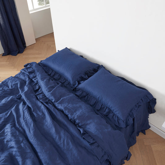 - Indigo Blue 100% Linen Ruffle Hem Pillowcases