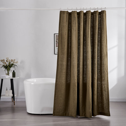 Bring the effortless elegance of linen to your bathroom with our classic collection of pure linen shower curtains. A linen shower curtain is beautifully textured and woven with attention to detail and style. Linen is naturally antimicrobial and wicks moisture away quickly, ensuring that your shower curtain stays dry and avoids mildew and mold.