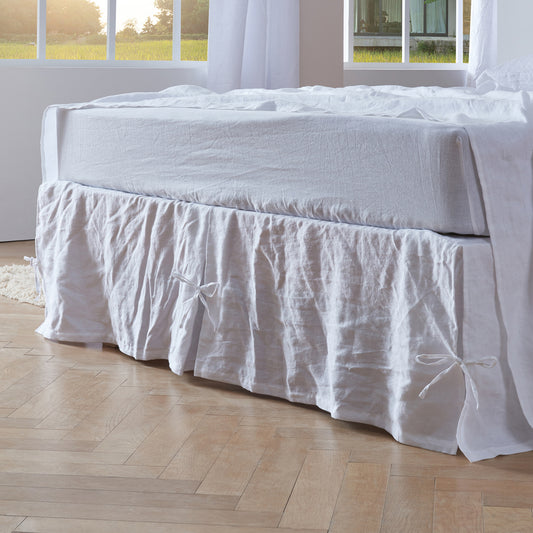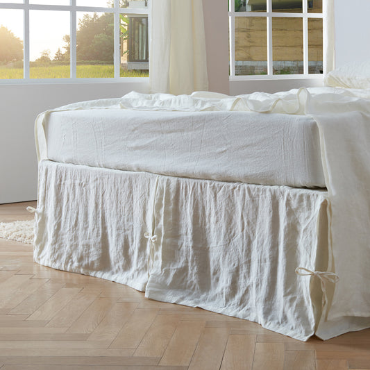 - Ivory 100% Linen Side Pleated Bedskirt with Knots
