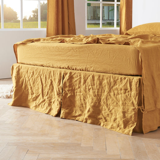- Mustard 100% Linen Side Pleated Bedskirt with Knots